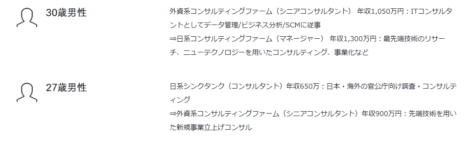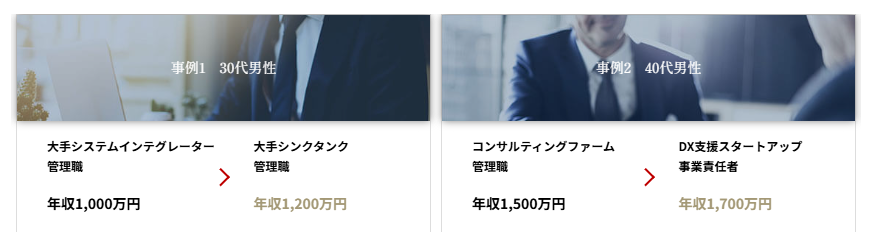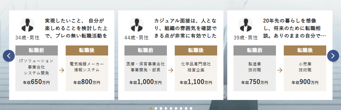 男性管理職を中心としたハイクラス転職がおおく、キャリアアップには最適なサービスであることです。