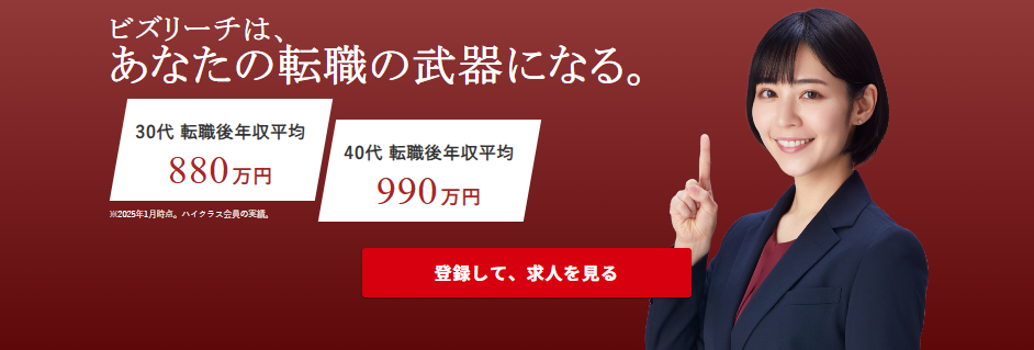 ビズリーチは、ハイクラス転職を目指す方に最もおすすめの転職サイトです。スカウト型の仕組みを採用しており、登録するだけで自身の市場価値を確認しながら、効率的にキャリアアップを図れます。