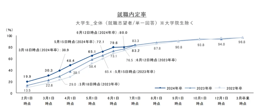 引用元:就職プロセス調査(2024年卒)「2023年7月1日時点 内定状況」