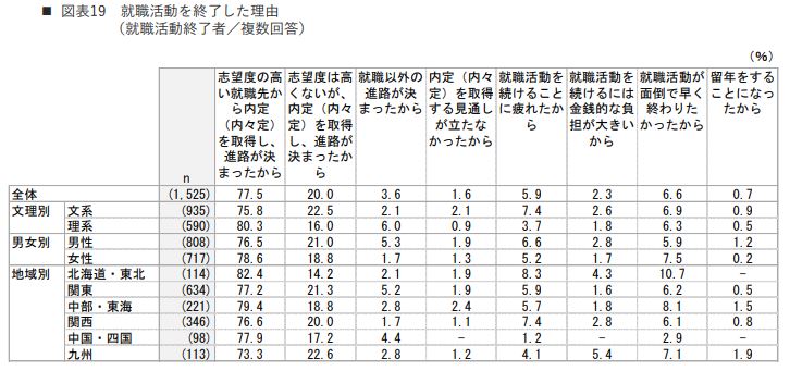 また、同調査によると、就職活動を終了した理由は必ずしも前向きなものとは限らないことが読み取れます。